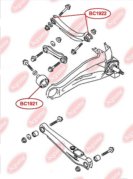 Сайлентблок поперечного верхнього важеля (бумеранг) задньої підвіски, внутрішній / зовнішній BC1922